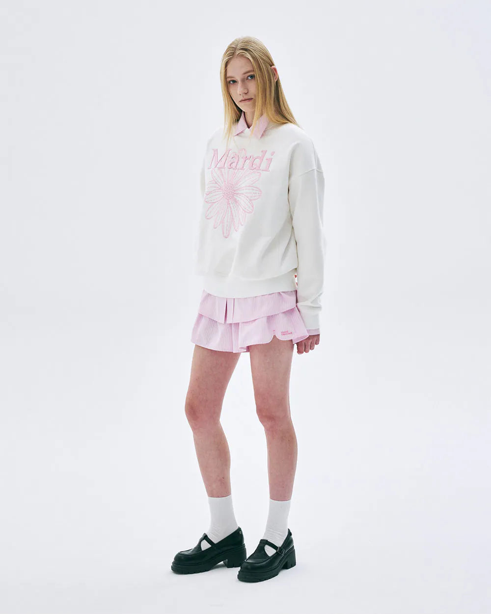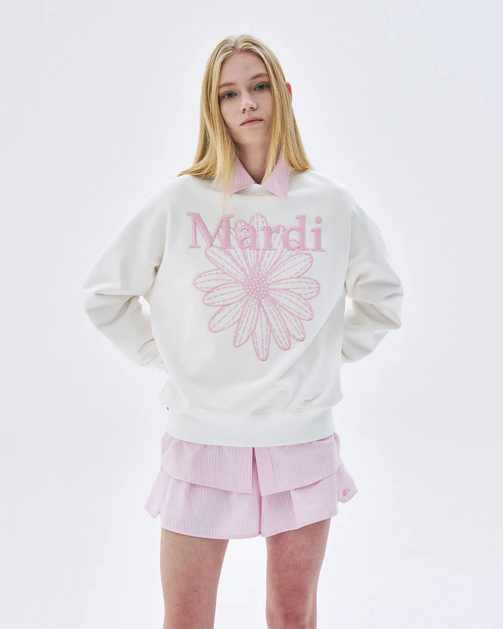 SWEATSHIRT FLOWERMARDI NEEDLEWORK-WHITE PINK